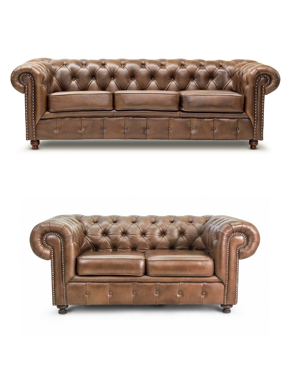 Sala 3-2 Chesterfield 100% Piel Genuina Manchester Tabaco